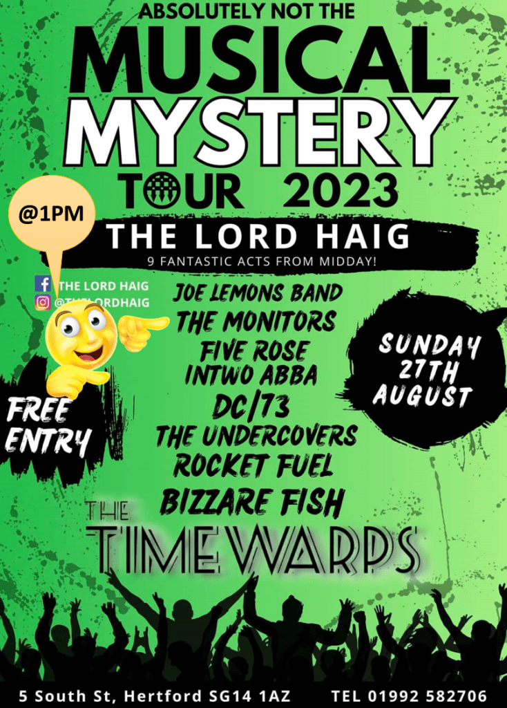 - AUG 28 – 1pm to 1:45pm ABSOLUTELY NOT The MMT at The Lord Haig, Hertford